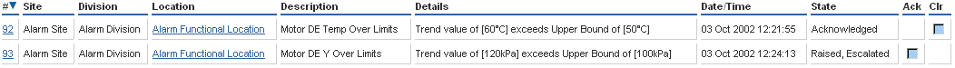 Time the alarm was acknowledged and who acknowledged the alarm.